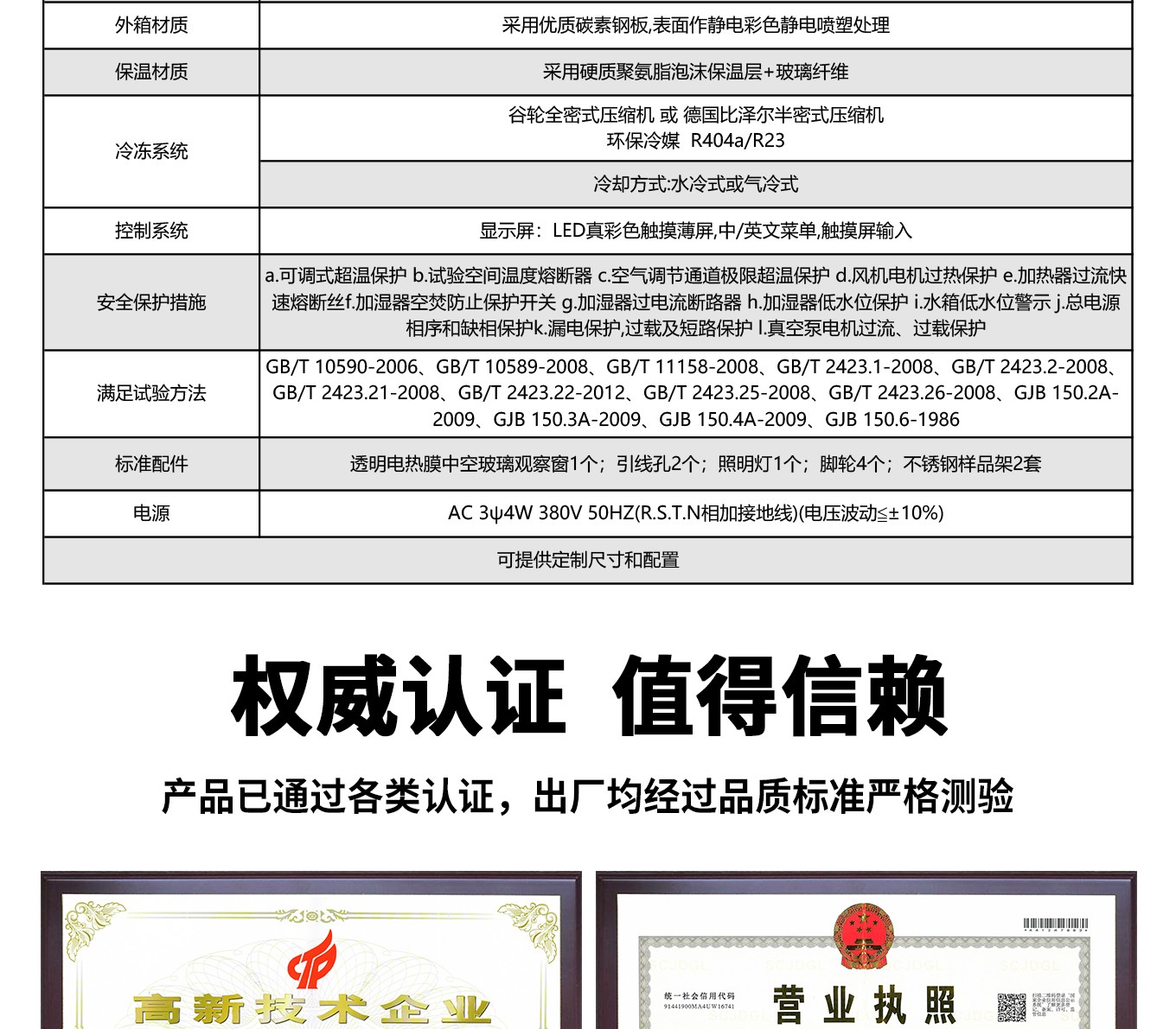 查看更多高低温交变国产成人麻豆免费观看,又称高低温试验机、高低温实验箱、高低温一体机、高低温箱,适用于对电工、电子及其他产品、零部件及材料进行高温或低温试验,以及高低温循环试验的环境国产成人麻豆免费观看设备,麻豆精品久久国产高低温国产成人麻豆免费观看设计符合GB国标技术标准《GB/T 10592-2008 高低温国产成人麻豆免费观看技术条件》。